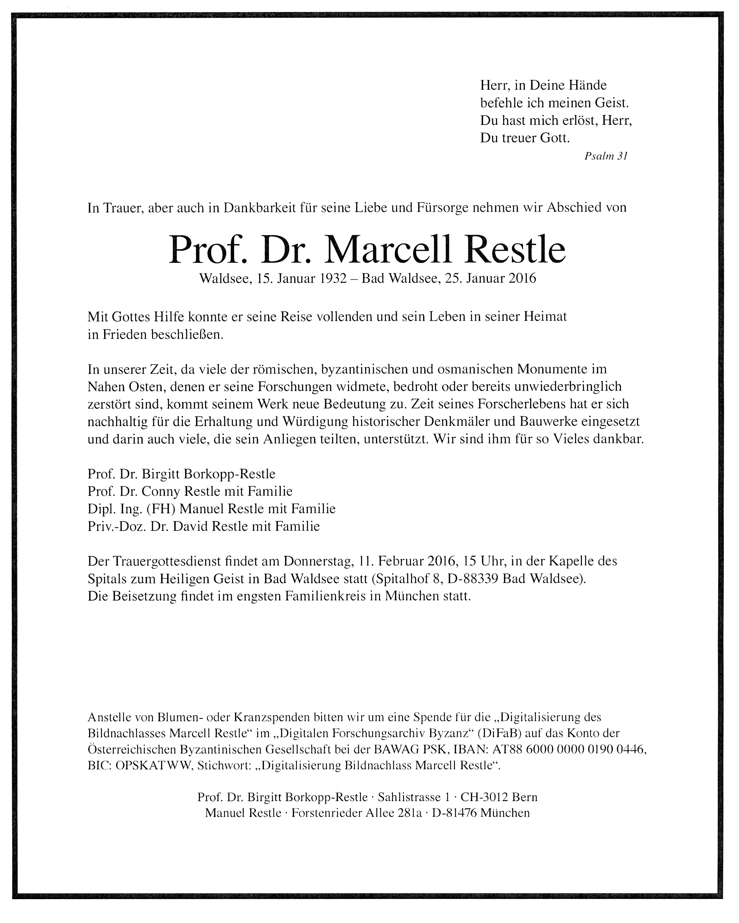 Todesanzeige Restle